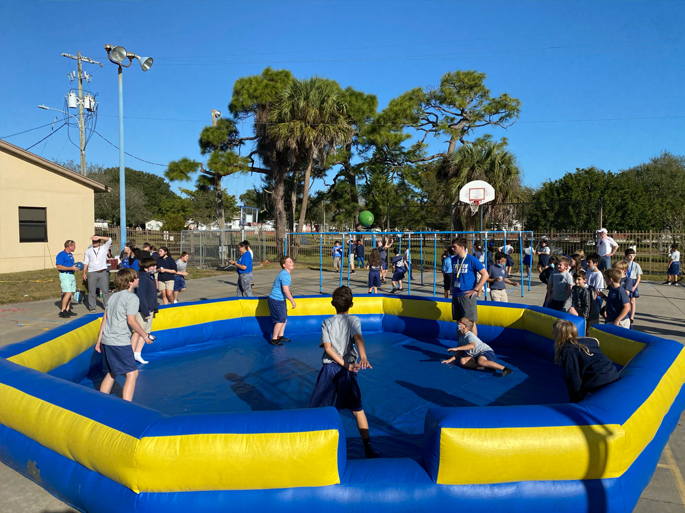 GaGa Ball is believed to have originated in Israel, and slowly spread across the U.S. over several decades. Ga means ìhitî or ìtouchî in Hebrew. In the rules of GaGa ball, the ball must touch the ground two times before it is considered in play, hence the name. GaGa Ball consists of a lightweight bouncy or foam ball and an octagon enclosure known as the ìGaGa Ball Pit.î The object of the game is to hit the ball at or below opponentsí knees to eliminate them from the pit. The last one left in the GaGa Ball Pit is the winner.