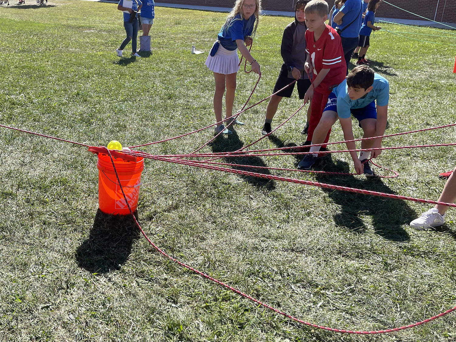 The goal is to work together to ensure each person gets through the spider web through a series of holes or ropes without touching the cords.